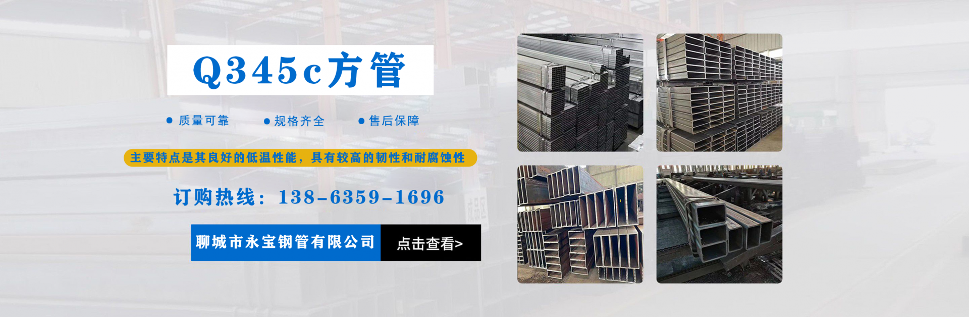 聊城市永寶鋼管有限公司主要銷售各種方管產品,主營無縫方管,Q345B無縫方管,無縫矩形管,直角無縫方管,幕墻方管,建筑工程專用方管,無縫方管廠等,我公司在長期的生產經營業務中與各大鋼廠建立了長期穩固的業務合作關系。  可提供無縫方管,無縫矩形管,直角無縫方管,幕墻方管,建筑工程專用方管,無縫方管廠,無縫方矩管,Q345B無縫方管,Q345E無縫方管,Q355B無縫方管,小口徑無縫方管,厚壁無縫方管,27simn無縫鋼管,厚壁無縫鋼管廠家,無縫方矩管,45#無縫鋼管,20cr無縫鋼管,大口徑無縫鋼管,小口徑無縫鋼管,厚壁無縫鋼管,薄壁無縫鋼管,Q345C無縫鋼管,Q345D無縫鋼管等產品。目前是華東地區規模較大的方管經營企業之一。產品廣泛用于汽車行業、礦山、農業機械、石化石油機械、工程機械、核電工業、高用量變壓器、衛星發射塔、造船、玻璃機械、塑料機械、紡織印染機械及其他各種機械等眾多行業。  公司上千種規格、材質任您選購,我公司將以熱情的服務,優惠的價格回報新老客戶,我們熱情歡迎來電/來人垂詢、洽談!隨時恭候您光臨惠顧!公司以“永不滿足、志在超越”的企業精神,以不斷創新的新經濟理念不斷創造新的輝煌。以良好的產品奉獻當代社會,以滿意的服務酬謝四海賓朋。本公司愿與國內外各界朋友密切合作,攜手共創...